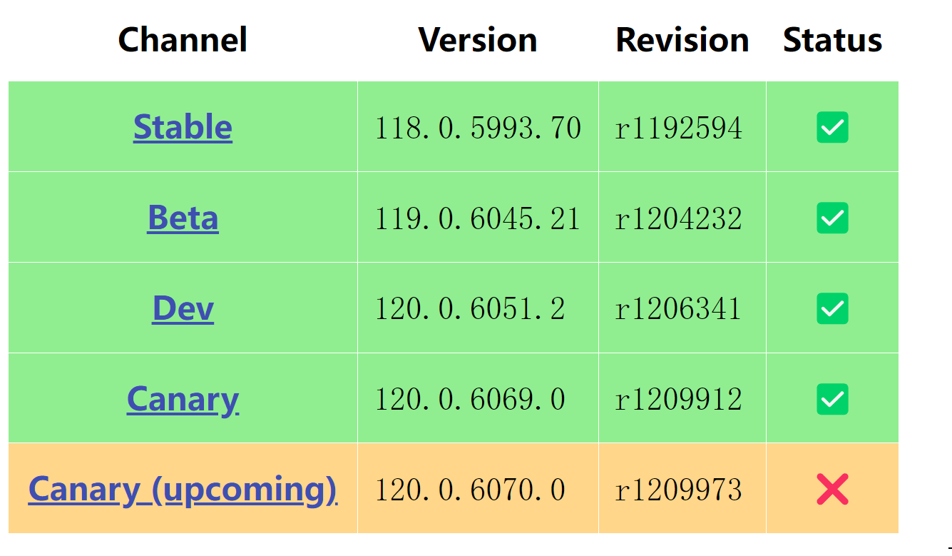 可以看到117 Stable 稳定版本以及更高版本的测试版。